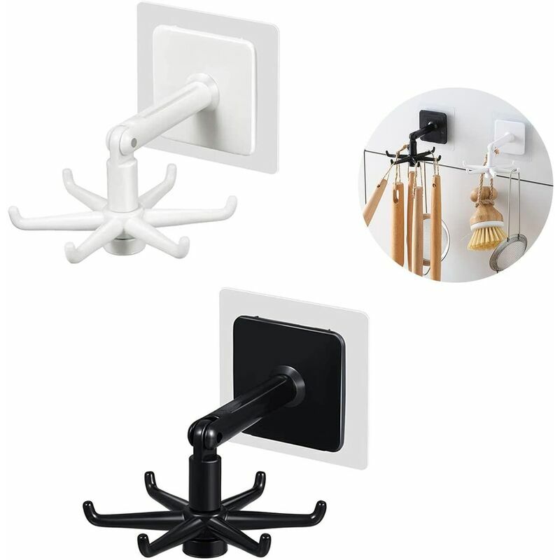 Specifiche del prodotto: il prodotto è realizzato in materiale ABS di alta qualità, non c'è bisogno di preoccuparsi della ruggine, la capacità di carico è molto buona, durevole e non facile da rompere. La confezione contiene: 2 o 4 ganci che possono essere ruotati di 360�. Ogni gancio ha 6 rami per garantire un utilizzo ottimale. Include anche adesivi in PVC. Design multifunzionale: non sono necessari altri strumenti e l'adesivo può essere fissato saldamente al muro senza danneggiarlo. Il gancio può essere ruotato in modo flessibile secondo necessità. Se è bloccato sotto il tavolo, può essere appeso verticalmente. Il piccolo gancio può essere utilizzato sempre e ovunque senza vincoli di spazio. Ciò libera efficacemente lo spazio verticale e rende lo stoccaggio più comodo, efficiente ed esteso. Risparmio di spazio: puoi posizionare i ganci girevoli sul muro o sotto l'armadio per riporre la cucina e metterlo in camera da letto. Anche il bagno è una buona scelta. Puoi riporli quando non