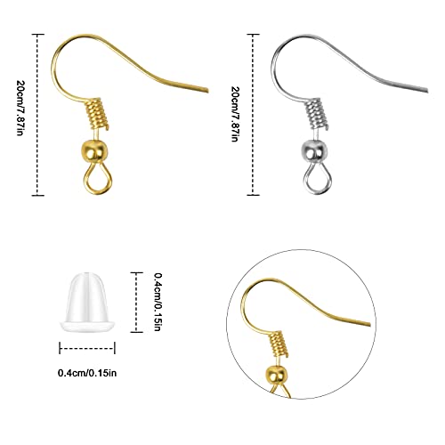 200 Pezzi Kit di Ganci per Orecchini, Ganci Orecchini, Ganci per Orecchini in Oro e Argento, Ganci per Orecchini Fai da Te, Forniture per Orecchino, Kit per Creazione Orecchini per Gioielli Fai Da Te
