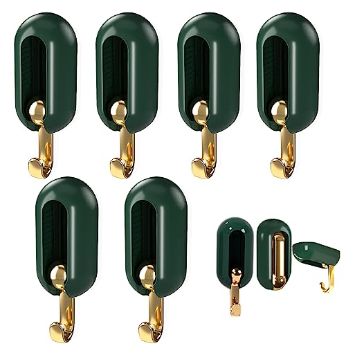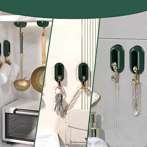 6 Pezzi Gancio da Cucina Girevole Non Perforati, Gancio Pieghevole Rotante, Appendi Accappatoio Bagno, Porta Chiavi da Muro Ganci da Parete,Carica Massimo 3kg,Supporto per posate da cucina (Verde)