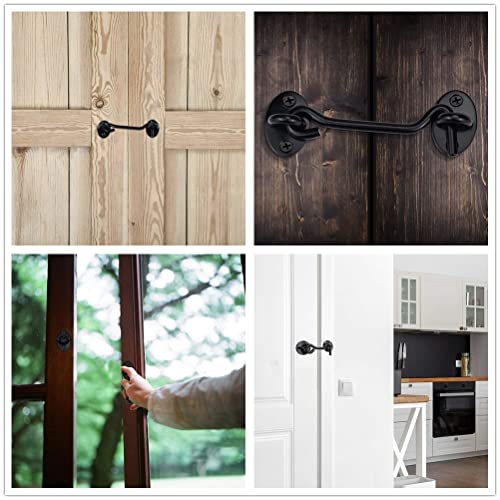 4 Pezzi Gancio Finestra, Gancio per Cabina in Acciaio Inossidabile, Ganci e Occhielli Serratura per Cancello Chiusure per Armadietti da Finestra per Porta Fienile, Armadio, Finestra Nero 4 Pollici
