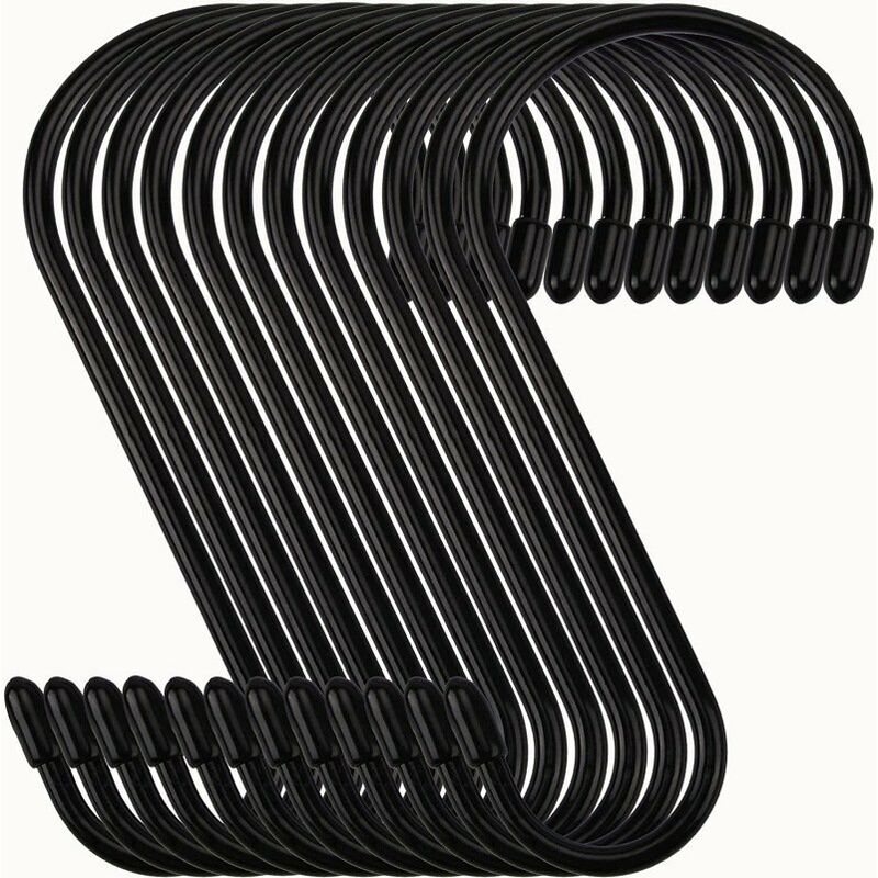 FACILE DA ORGANIZZARE: Con questi ganci, puoi organizzare facilmente lo spazio della tua cucina semplicemente appendendo pentole, padelle, ciotole, spatole, tazze e altri utensili da cucina su uno scaffale o una griglia, rendendo la tua cucina più efficiente e facile. Organizza il tuo guardaroba appendendo sciarpe, borse, cappelli, cinture, jeans, gioielli e altro, organizza anche gli attrezzi nel garage, appendi articoli da toeletta, asciugamani e accappatoi in bagno e coltiva le piante in giardino. Risparmierai un sacco di tempo per riordinare. ELEGANTE E OTTIMO PREZZO: L'elegante design in acciaio nero si abbina alla maggior parte delle cucine, armadi, studi o aree esterne. Questi robusti ganci a S sono convenienti e durevoli. ALTA QUALITÀ E SICUREZZA: Realizzato in acciaio metallico di alta qualità, è abbastanza resistente e sicuro (finitura liscia e una pallina su un lato) senza preoccuparsi di ferirsi le mani e graffiare. Ampia applicazione: Questi ganci pratici e portatili sono