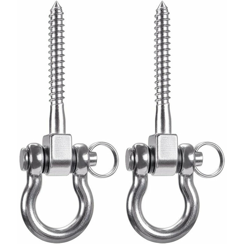 • Tutte le parti del gancio a vite sono realizzate in acciaio inossidabile 304 di alta qualità, che è resistente alla corrosione, elevata durezza e più sicuro. • L'innovativo design 2 in 1 può essere ruotato di 180° dalla parte anteriore posteriore rendendolo più flessibile da usare e può appendere qualsiasi oggetto pesante. • Adatto per uso interno ed esterno, tra cui altalene, amache, letti sacchi di sabbia, attrezzature da palestra, ecc. • Un set di 2 ganci ha un limite di peso combinato di 400 kg, sono disponibili ganci per altalene per carichi pesanti per bambini e adulti.