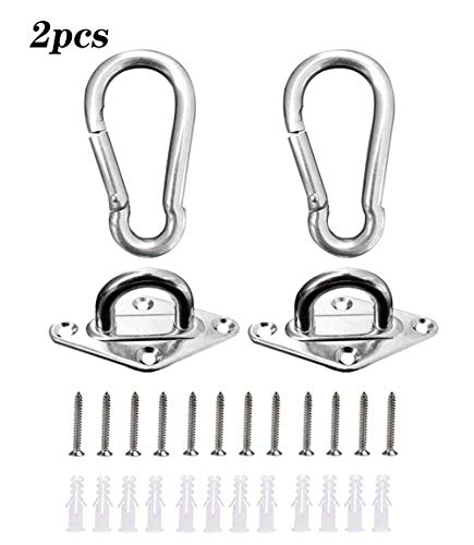 2 Pezzi Gancio per Soffitto, SUS304 Acciaio Inossidabile Gancio per Soffitto, capacità di Carico Fino a 450KG, 4 Viti per Legno, Yoga, Amaca, Sacco da Boxe