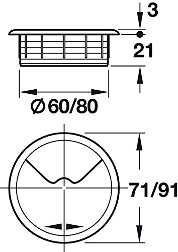 2 pezzi - GedoTec CAVO Boccola argento Scrivania Plastica da TONDO Let weiß-aluminium RAL 9006 CAVI PER STAMPA decoder via diam-ø 60 mm guaina USCITA MOBILE UFFICIO,tavolo,CAMPER ecc. Qualità loro