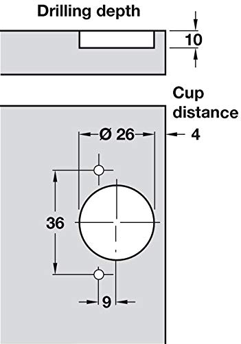 Profondità di foratura: cerniera 10,1 mm - Cerniera Carvan per porta di larghezza massima 400 mm (con 4 cerniere).