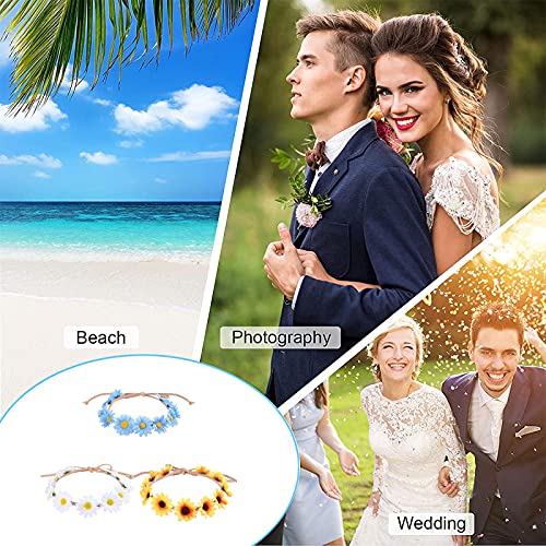 3 Pezzi Ghirlande Fasce,Corona Di Fiori Per Capelli,Gioiello Per Capelli Da Matrimonio,Decorazione Per Donne e Ragazze,Utilizzato per Festival,Feste,Matrimoni,Spiagge,Compleanni(Giallo,Blu,Bianco)