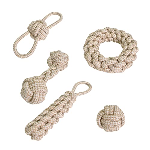 Set da 5 Pezzi Giocattoli di Corda per Cani, Nodo per Cuccioli Gioco, Giochi per Cani Indistruttibile, Corda di Cotone, Giocattoli Interattivi per Cani di Taglia Grande, Media e Piccola