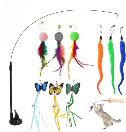 11 Pezzi Giocattoli Interattivo con Piume per Gatti, Giochi per Gatti Interattivi con Campana e Ventosa, Giochi Per Gatti in Casa, con Farfalle, Piume e Insetti, per Gatti e Gattini