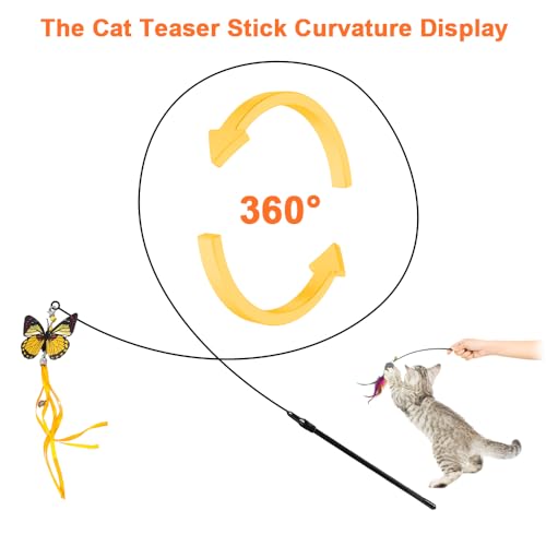【SicurezzaI e Durevolezza】la bacchetta per gatti di gioco per gatti è realizzata in filo d'acciaio elastico di alta qualità, non facile da rompere, e può essere rapidamente ripristinata alla sua forma originale dopo la piegatura. Il giocattoli per gatti con piume è realizzato con materiali ecologici, tutti i coloranti sono sicuri, atossici e inodori, i gatti possono leccarli e morderli senza preoccupazioni.