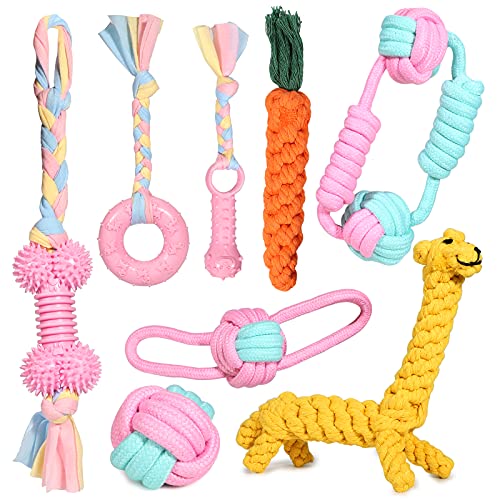 8 Pezzi Giochi Cane, Corda Cane Resistenti Giochi di Piccola Grandi Giochi Cane Cucciolo Set Interattivi Giochi da Masticare e per Cani Giocattoli per Cuccioli/Cani di Taglia Piccola, Media e Grande
