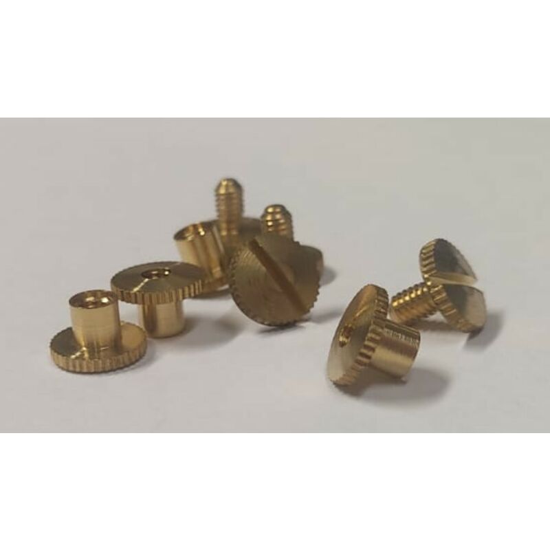 4 PEZZI - GIUNZUONI PER ASSEMBLAGGIO MOBILI - MASCHI E FEMMINE - IN OTTONE LUCIDO 4x5MM