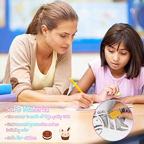 Design Assemblabile e Carino: Le gomme da cancellare colorate per Bambini presentano adorabili forme di cibo dei cartoni animati, principalmente biscotti, latte e marzapane. La forma è realistica e carina, e la gomma novità può essere smontata e assemblata per permettere ai bambini di usare la loro immaginazione e rendere il loro apprendimento quotidiano più divertente.