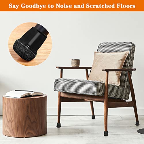 32 Pezzi Gommini per Sedie, Piedi Rotondi in Silicone,Tappi Piedini Trasparenti a Cupola per Mobili, Sgabelli, Tavoli, Divani - Feltrini Antiscivolo per Gambe Sedie Fondo in Feltro (Nero, 19-25 mm)