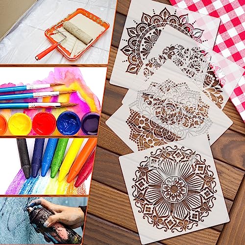 4 Pezzi Grande Mandala Stencils Pittura, Mandala Pittura Stencil, Riutilizzabile Painting Template Forniture per Fai Da Te Tegola Legna Tela Pavimento Parete Cuscini Decorazioni(30x30CM)