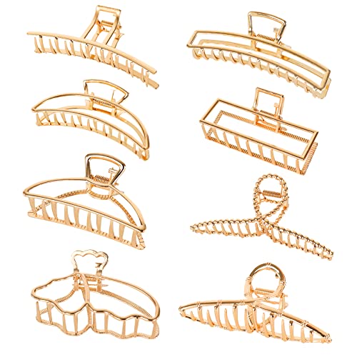 8 Pezzi Grande Mollette Capelli Donna, Fermaglio Capelli Donna in Metallo Dorato Flessibile e Antiscivolo, Clip a Griffe per Ragazze e Donne con Capelli Spessi o Sottili