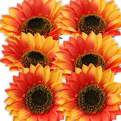 6 pezzi grandi teste di girasole artificiali, 17,8 cm arancioni finta seta girasoli sfuso finto sole decorazioni per casa, compleanno, festa, fai da te, matrimonio, autunno decorazioni
