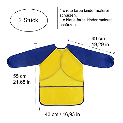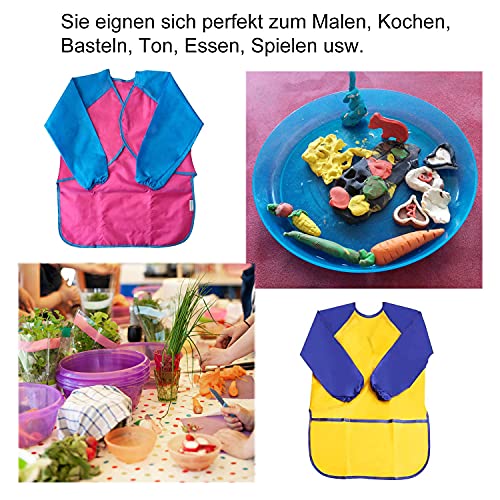 2 Pezzi Grembiule Pittura,Bambini Manica Lunga Grembiule per Pittura,Adatto per Dipingere, Cucinare, Creare, Argilla, Mangiare, Giocare, Giallo e Rosa
