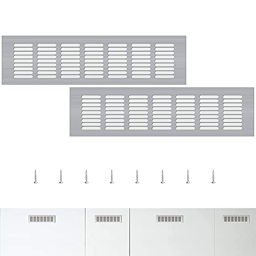 2 Pezzi Griglia D'aria in Alluminio, Griglia D'aria Rettangolare, Griglia Areazione, Griglia Rettangolare da Incasso, per Armadio Scarpiera Lavandino Cucina (11,8 * 3,15 Pollici, con 8 Viti)