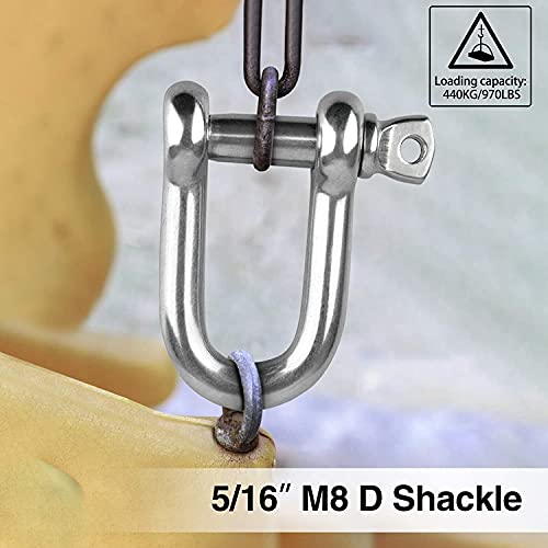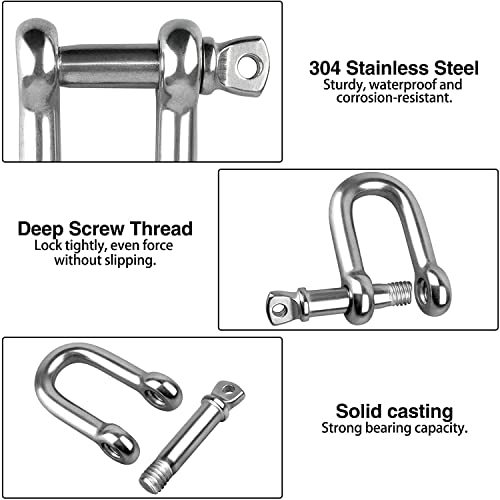 【Uso versatile】Questo grillo in acciaio inox a forma di D è ampiamente utilizzato per appendere sacchi di sabbia, alpinismo, trekking, catene di ancoraggio, accessori per vela e per collegare viti di cesti di fiori, catene a vite pesanti, ganci e altri accessori.