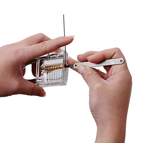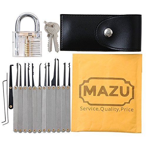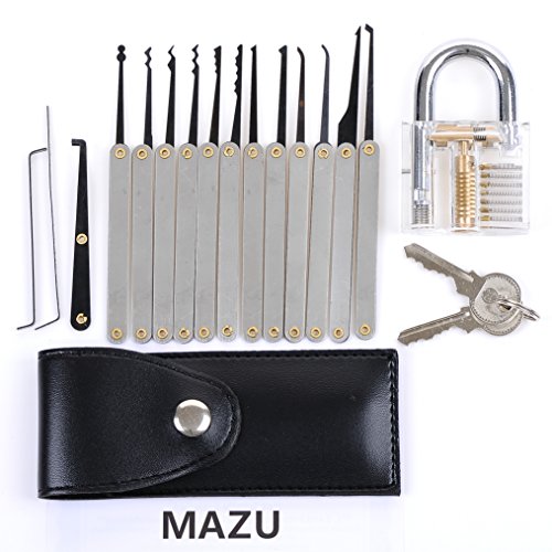 Set da 15 pezzi di grimaldelli aprilucchetti ed attrezzo di estrazione chiavi + lucchetto trasparente per pratica