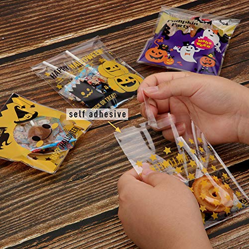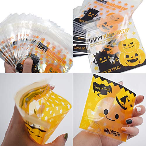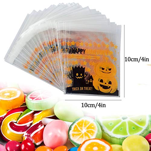 200 Pezzi Halloween Autoadesiva Sacchetti di Caramelle Trasparente Borse per Biscotti Sacchetto Regalo Confezione Sacchetto per Cioccolato Cookie 4 x 4 Pollici 2 Stili