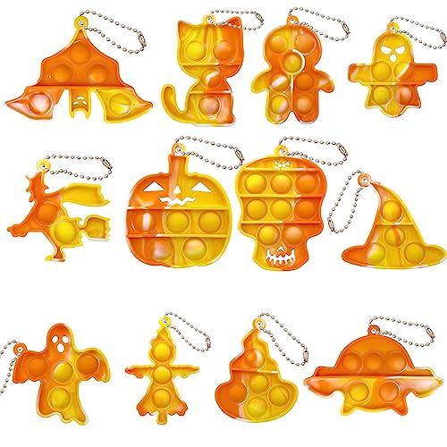 12 Pezzi Halloween Mini Pop Portachiavi Fidget Toy,Push Pop,Mini Sensory Toy,Piccoli Giocattoli Per Bambini Con Autismo Per Alleviare Lo Stress,Gadget per compleanno molto apprezzato (arancia)