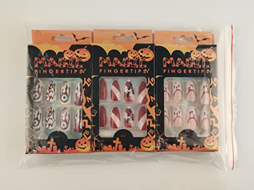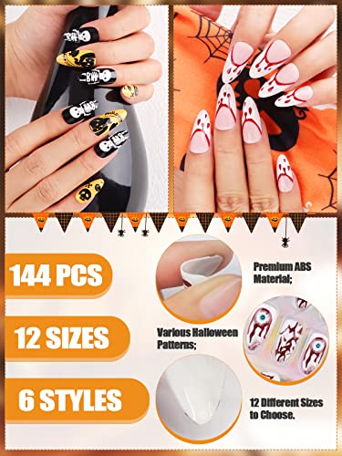 144 Pezzi Halloween Unghie Finte, Kalolary Unghie Artificiali Halloween Acriliche Copertura Completa Stiletto Unghie Corte Finte Premere Sulle Unghie con 6 Pezzi Colla Fai da Te Nail Art Salon Home