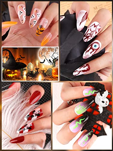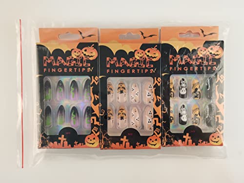 Vari modelli: le unghie in acrilico a copertura totale hanno diversi modelli di design relativi ad Halloween, inclusi molti elementi classici di Halloween: dolcetto o scherzetto, zucca, ragno, fantasma e così via, che ti aiuteranno a sentire l'atmosfera festosa più intimamente.