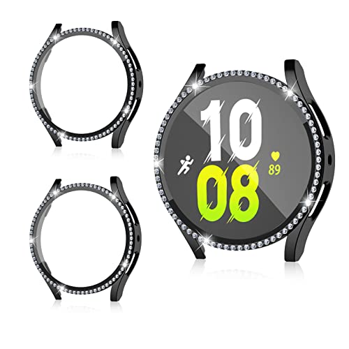 2 Pezzi - Harikiri Diamante Cover Compatibile con Samsung Galaxy Watch 5/4 40mm 44mm,Difficile PC Full -Shock Protective Copertura, glitter di vetro a temperatura anti -fog per Galaxy Watch5/4