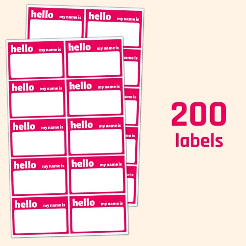 200 Pezzi - Hello My Name Is Sticker, Adesivi Name Tag - Rosso
