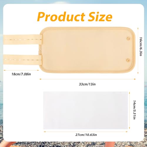 Contenuto della confezione: riceverai 1 pezzo di impacco olio ricino e un cuscinetto sostitutivo, la dimensione è 33x16 cm, la lunghezza dell'elastico è 18 cm, il cuscinetto sostitutivo è 27x14 cm. (Olio di ricino non incluso)