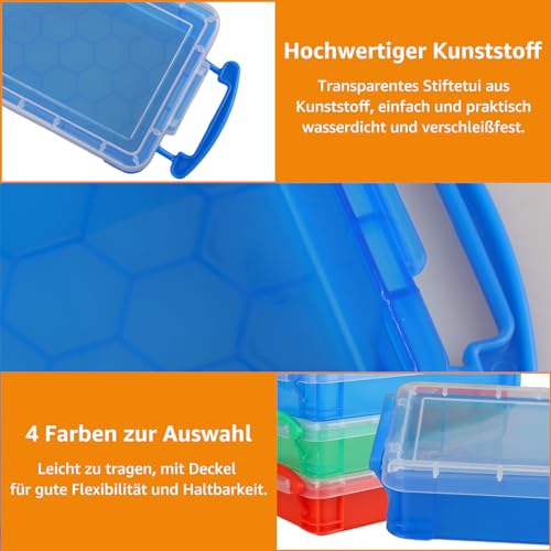 [4 Scatole per matite in plastica di colori diversi] - La confezione contiene 8 scatole per la conservazione della cancelleria di 21 x 10 x 4 cm in 4 colori diversi: verde, bianco, blu e rosso. La capacità è sufficiente per contenere le vostre necessità quotidiane.