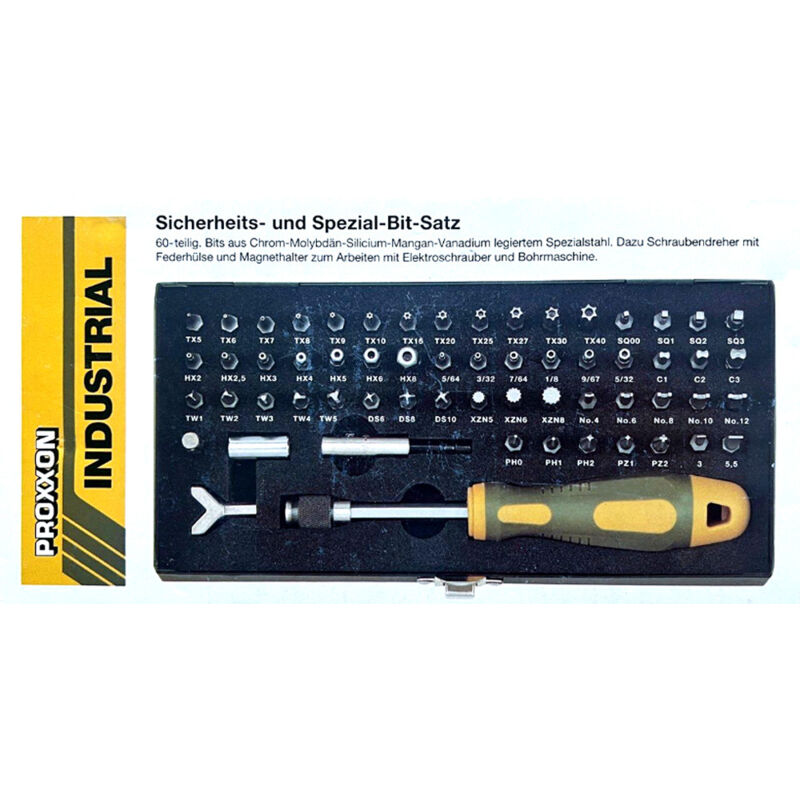 Serie INDUSTRIAL 60 inserti in acciaio speciale legato al cromo-vanadio. Cacciavite con manicotto a molla e supporto magnetico.