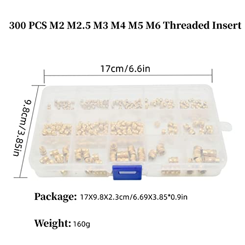 Il pacchetto include: 300 pezzi M2 M2.5 M3 M4 M5 M6 inserto filettato e una scatola trasparente per la conservazione, se avete qualsiasi domanda, non esitate a scriverci.