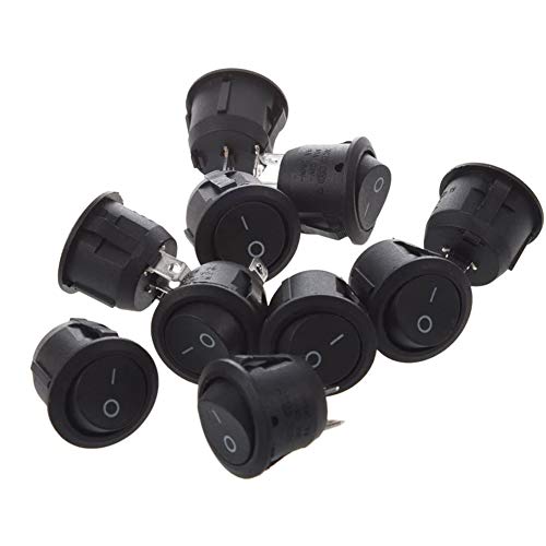 CYH 10 pezzi Interruttore a Bilanciere, Button push mini interruttore SPST Rotondo Nero On/Off AC 6A/125V 3A/250V, Interruttore a Levetta per Auto, Elettrodomestici
