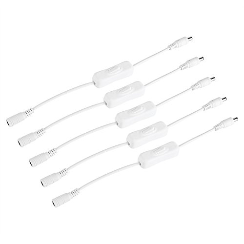 5 Pezzi Interruttori a Filo Interruttore in Linea 12V Interruttore Acceso/Spento della Luce di Striscia LED Jack DC Cavo (5,5x2,1 mm) con Connettori Maschio-Femmina per Luce a Nastro LED (White)