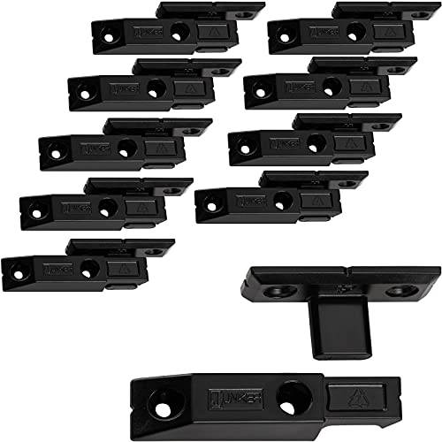 10 pezzi di raccordi a scorrimento JUNKER FLINK AS per rivestimenti e pannelli in legno (montaggio con viti per truciolare). Ogni raccordo di collegamento è composto da due parti, che vengono avvitate al coperchio e al corpo