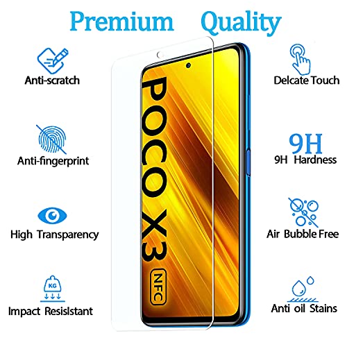 3 Pezzi - KELOLIN Vetro Temperato Protezione Schermo per Xiaomi POCO X3 NFC/POCO X3 Pro 9H Durezza, Alta Trasparente, Anti Graffio Protezione Schermo Compatibile con Xiaomi POCO X3 NFC/POCO X3 Pro