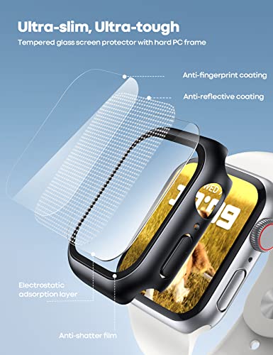 2 Pezzi - Lamicall Cover Apple Watch Series 7/8/9 41mm, con Protezione dello Scherm in Vetro Temperato, Frame in Alluminio Robusta, Leggero Custodia Apple Watch per Apple Watch Series 7/8/9 41mm