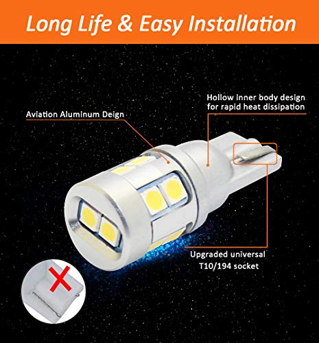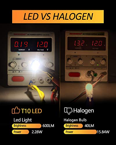 2 Pezzi di Lampada Led T10 W5W, Canbus Senza Errore,12V 3W Effettivo, No Polarità 600 Lumen 360°