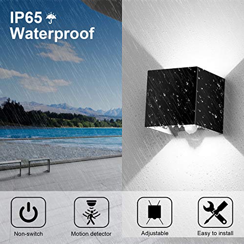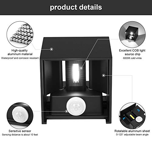 2 Pezzi 12W Lampada da Parete Con Sensore di Movimento Per interno ed esterno LED Applique Parete Moderno Cubo Nero Lampada da Muro 6000K Bianco Freddo Luci a Parete in Alluminio IP65 Impermeabile