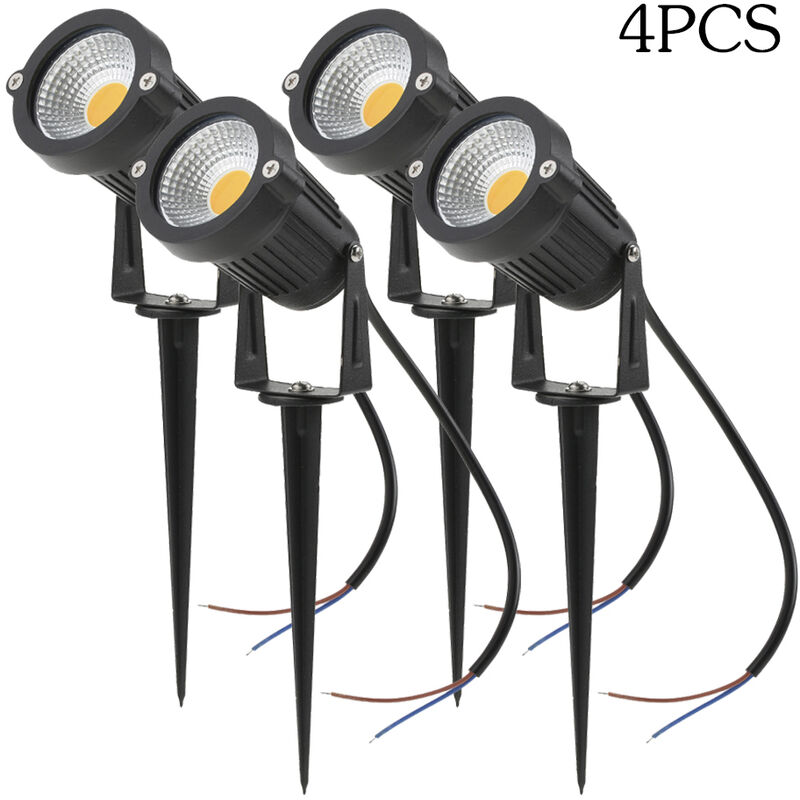 This 4 pack COB lawn lamp is super bright with 5W excellent COB LED(500LM per piece) and it is well-compacted with cast aluminum. Moreover, IP65 water resistant and easy installation make it suitable for your garden, yard, wall, pathway, landscape, outdoor decoration, etc. Features: SUPER BRIGHT: utilizing 4pcs 5W excellent COB LED(500LM per piece) and glass lens with high transmittance, it can provide enough lights for your garden, yard and pathway, no more worrying about darkness when you get home. WELL-COMPACTED & GREAT HEAT DISSIPATION: made by cast aluminum with great heat dissipation performance, it's well-compacted and has excellent heat dissipation performance, safe and used at ease. WATER RESISTANT: IP65 water resistant, weather-proof, it can be used in different weather conditions, convenient to use. ROTATABLE & EASY INSTALLATION: just insert the lamp into the lawn with included spikes(pan: 360 degree adjustable) or hang it on the tree(tilt: 270 degree adjustable:) with no