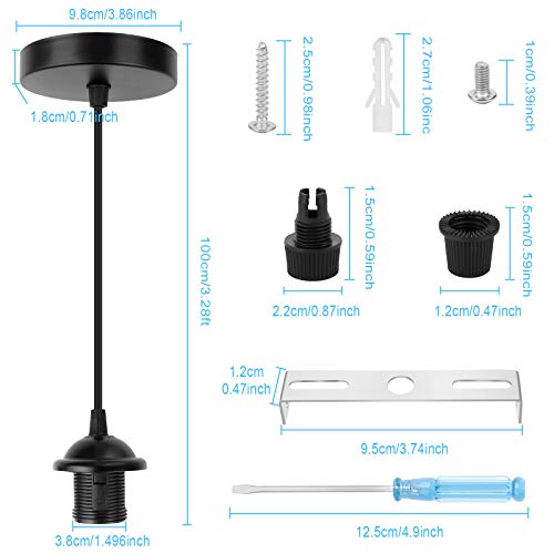 2 Pezzi Lampada a Sospensione a Soffitto Portalampada con Attacco E27 Lampada da Soffitto in Stile Industriale Moderno Rosone con Cacciavite e Accessori di Montaggio, Cavo da 80 Cm, Nero Opaco
