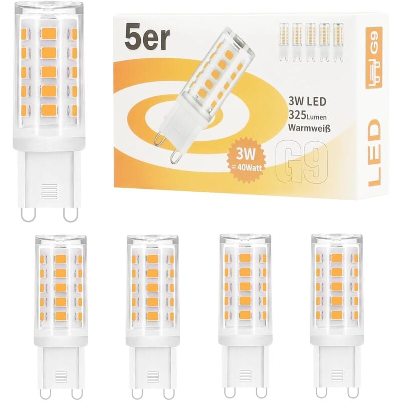 Risparmio energetico - : questa lampadina LED G9 da 3 W è una lampadina a risparmio energetico, rispetto alle lampadine tradizionali, la lampadina G9 consuma solo 3 W. Inoltre, la lampadina G9 può sostituire le lampadine alogene da 40 W, lo consente Risparmia il 90% di energia e quindi riduci la bolletta elettrica. Non sfarfalla e non ha un dimmer, che protegge i tuoi occhi dalla luce e crea un'atmosfera calda. [Bianco caldo 3000K e colore bianco caldo] 【Angolo del fascio di 360°】: Questa lampadina LED G9 bianco caldo ha 3000K, un'intensità luminosa di 325LM, un angolo del fascio di 360° e una resa cromatica superiore a 80. Grazie alle buone prestazioni di questa lampadina, riproduce i colori originali e crea una piacevole atmosfera. [Resistenza al calore e alta qualità]: le basi in ceramica refrattaria G9 standard sono più facili da installare, le luci LED G9 sono realizzate con alloggiamento in PC e substrato ceramico, buon isolamento, buona resistenza al calore, L'illuminazione