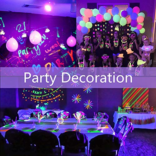 Effetto luce nera: questa lampadina ultravioletta può far risaltare gli indumenti bianchi e i colori chiari nella penombra. Consente di creare bellissimi effetti in termini di atmosfera nelle serate, perfetto anche per dare un bel risultato per i quadri fluo o il trucco fluo.
