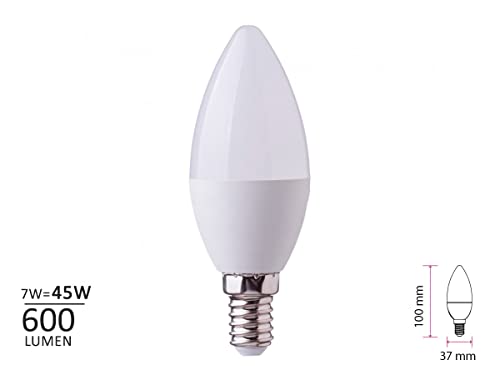 10 Pezzi Lampadine Led E14 C37 7W 600 Lumens, Forma Candela Oliva, Bianco Caldo Neutro Freddo, Garanzia 5 Anni (4000K)