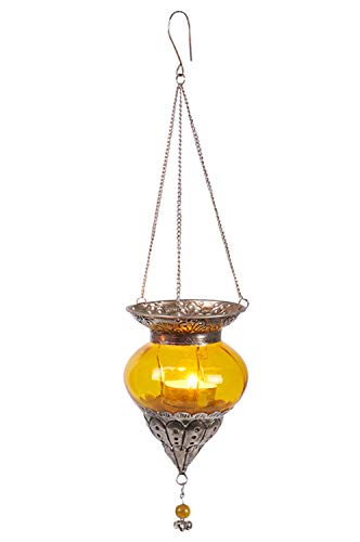 Lanterne rotonde a vetro stile indiano da appendere, dal design a goccia come lanterna da appendere, lumino, 100% fatto a mano in India da commercio equo solidale, il vetro è colorato. Il design iridescente cattura la luce delle candele e la riflette creando un bellissimo effetto, evocando nella tua stanza giochi di ombre orientali, nel soggiorno come decorazione appesa sopra al davanzale della finestra o come decorazione per matrimoni, per feste estive, da appendere al tavolo da pranzo del tu