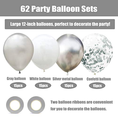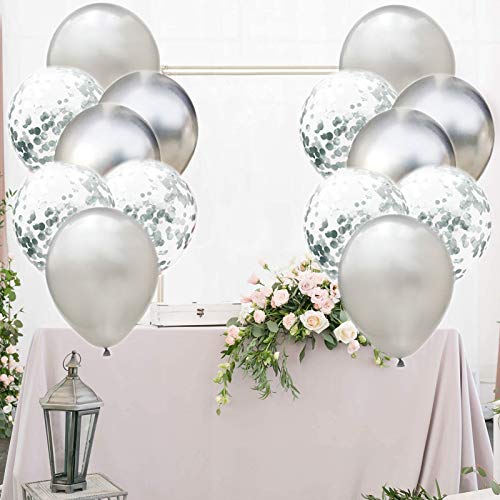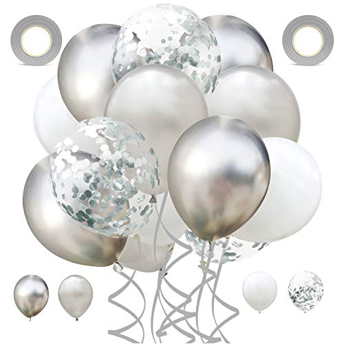 60 Pezzi Lattice Palloncino,Palloncini Compleanno,Palloncini con Coriandoli,Palloncini Bianchi,Palloncini Metallici,per la Cerimonia Nuziale Laurea Doccia Nuziale (Argento)
