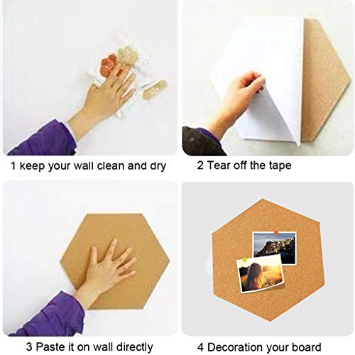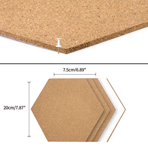 12 pezzi Lavagna Sughero, Feltro Esagonale Sughero Pannelli Muro, Bacheca in Sughero Autoadesivo Fai-da-te con 80pz perni per Appendere Bacheca Foto, Decorazione Domestica e Memo Ufficio