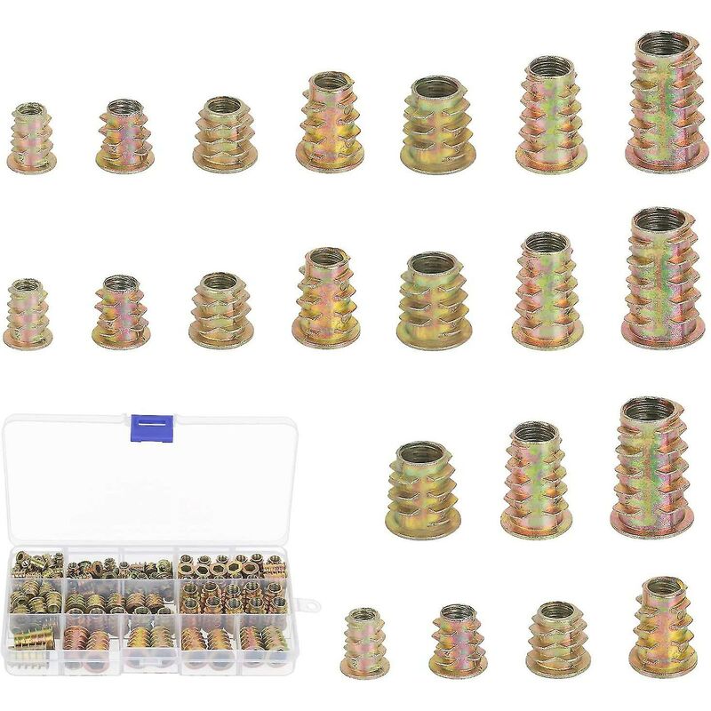 Confezionato in una scatola di immagazzinaggio, puoi ottenerlo rapidamente Riparazione di mobili: se hai bisogno di rinnovare mobili in legno e hai intenzione di aggiungere gambe a un mobile appena acquistato, i dadi di inserimento sono perfetti per te. Facili da installare: i dadi filettati sono relativamente facili da installare. Praticare un foro della dimensione corretta in cui inserire il dado esagonale. Utilizzare una chiave esagonale per avvitare il dado nel foro. Le filettature esterne trattengono il dado e ne impediscono l'allentamento dovuto alle vibrazioni. Ampiamente applicabile: è molto adatto per sostituire i dadi filettati in presenza di difetti nei fori delle viti per legno. Adatto a falegnami, artigiani, proprietari di case per riparare armadi, pavimenti, giocattoli in legno, lavori di costruzione e altri sughero, fibra di vetro. Materiale: gli inserti a vite esagonale sono realizzati in lega di zinco, che è durevole e resistente all'ossidazione e alla corrosione.